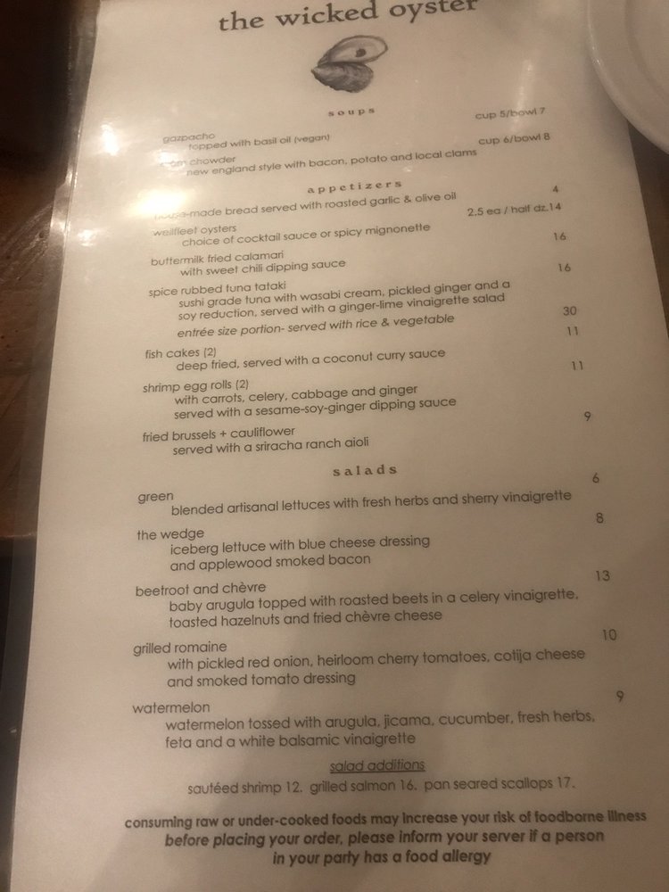 Welcome to The Wicked Oyster, a culinary gem nestled in the heart of Wellfleet, MA. Specializing in American seafood, this charming bar captivates food lovers with its warm ambiance and expertly crafted cocktails. Signature drinks include the refreshing TIDAL, made with Corvus Vodka and cucumber, and the zesty SMOKING MIRRORS, blending mezcal and pineapple.